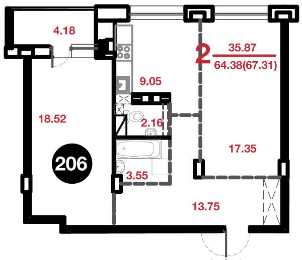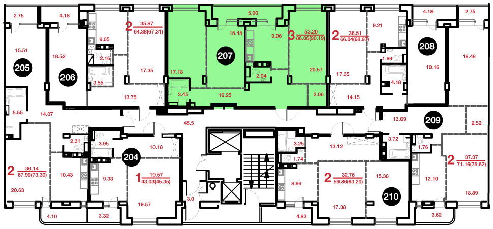 Выберите № квартиры: 204 205 206 207 208 209 210