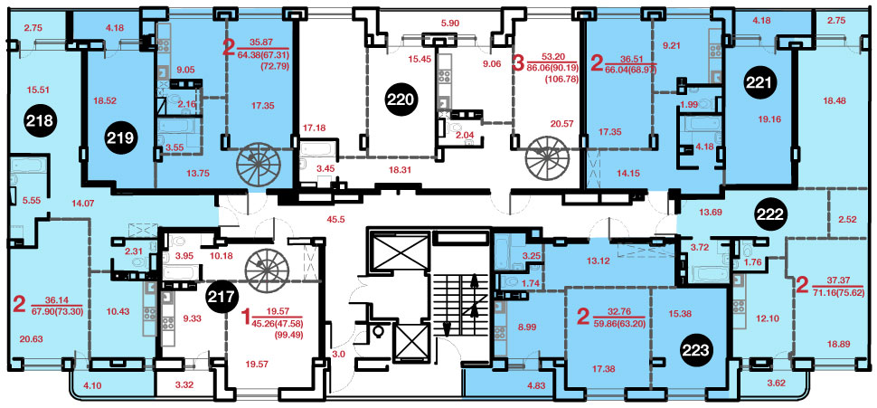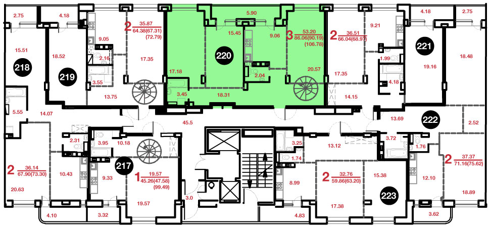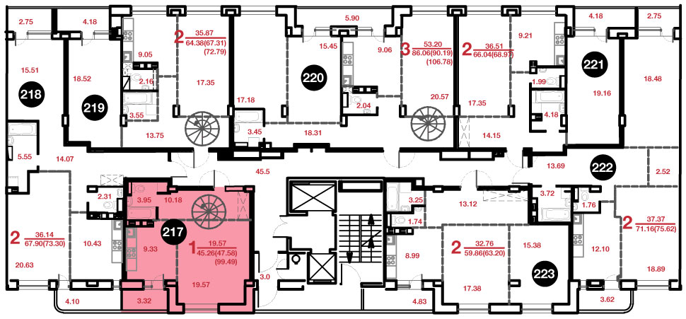 Выберите № квартиры: 217 218 219 220 221 222 223